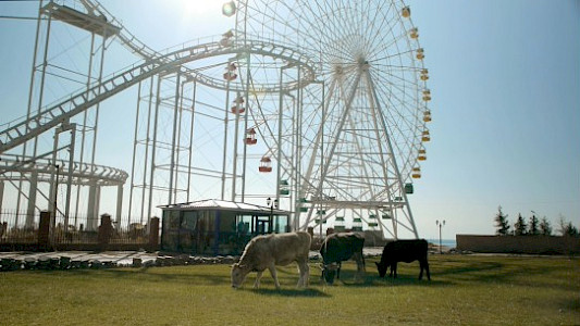Bosteri is a village in the middle of the Kyrgyz steppe, neighbored by meadows with wild horses, snowy peaks of the Tian Shan and one of the world’s largest mountain lakes. Between the empty huts at the beach a Ferris wheel rises up into the sky, that only runs for two months of the year. An encounter with the people that summer has left behind.