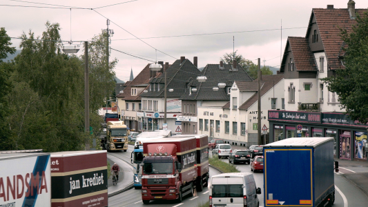 A huge construction project will change Germany´s most notorious bottleneck forever - a long-term observation over eight years of people living in Spa town Bad Oeynhausen. A film about Germany, small town society and a huge motorway."The spa town of Bad Oeynhausen: Every day, thousands of trucks roll through the city centre and over the B 61 federal road which connects the A2 and A30 motorways, respectively Warsaw and Amsterdam. When the threat of losing its status as a health resort looms on the horizon, which means losing the inviting title of 'Bad', something has to change: A bypass is to be built.Over a period of eight years, the film documents the gridlocked traffic at this bottleneck, the efforts of the mayor, police, fire brigade and construction companies, the delays in the construction of the northern bypass and above all the reactions of the affected residents. The latter look forward to some quiet and relief – or will soon have the motorway right in front of their door. The long-term documentation focuses less on the large-scale infrastructural measures than on their consequences for the people living by the roadside. Other stories are 'picked up' there with a fine instinct for unusual characters and leaving lots of space for their personalities and quirks. These include the local tradition of counting trucks on the federal road or the construction site as well as taking a walk or jogging on the long unfinished section of the road. (Frederik Lang, Catalogue DOK Leipzig 2019)