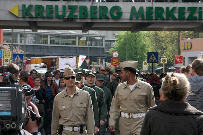 THE BRIG is an act of rebellion. The founders of The Living Theatre, Judith Malina and Julian Beck, were among the initiators New York’s first General Strike for Peace in May 1963. It follows that they were the ones to take up ex-marine Kenneth Brown’s manuscript and bring it to the stage in 1964. The viewer becomes a part of a claustrophobic world where there is no escape from the intrinsic violence. The Living Theatre, with their moving attack against a sacred institution like the Marines, became public enemies for American Officaldom. In Europe they found a second home especially in the Berlin Akademie der Kuenste in the 1960s. In 2007, the Living Theatre decided to revisit The Brig to protest against any form of violent governance, a sad fact that has not changed in the intervening decades. The new production struck a nerve in the present day and won at the New York Obie Awards for group and direction. The European premiere on 30. April 2008, was the opportunity to capture the present strength of the piece and to document its historical meaning. The film directors are able to show the inner life of the group. These views are built into the filmed representation of the piece at interval in order to give the viewer other modes of observation. The original music and sound designs from Patrick Grant expand the sensory impact in a way that goes far beyond simple documentary.