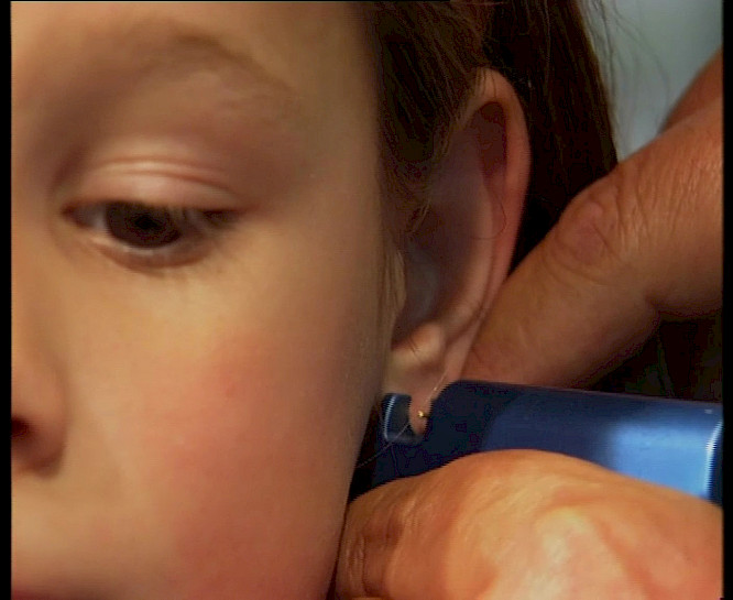 9 year old Antonia would like to wear "real" earrings, but her friend told her the holes would be shot into her ear. Antonia decides to inform herself more thouroughly before starting such an adventure...