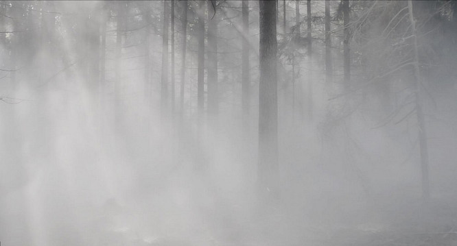 Oscillating between aesthetic and documentary forms, Kaltes Tal describes the daily business of a strip mine harvesting lime. The material removed is processed and returned to nature through forest liming. This measure attempts to counteract acid rain that troubles the forest floor. A cycle like a Mobius strip – an irreversible consequence due to the mining materials in order to restore the fragile natural balance. Lime dust delicately dusts the forest floor. A white, spherical alternative world opens, questioning our ambivalent relationship to nature.