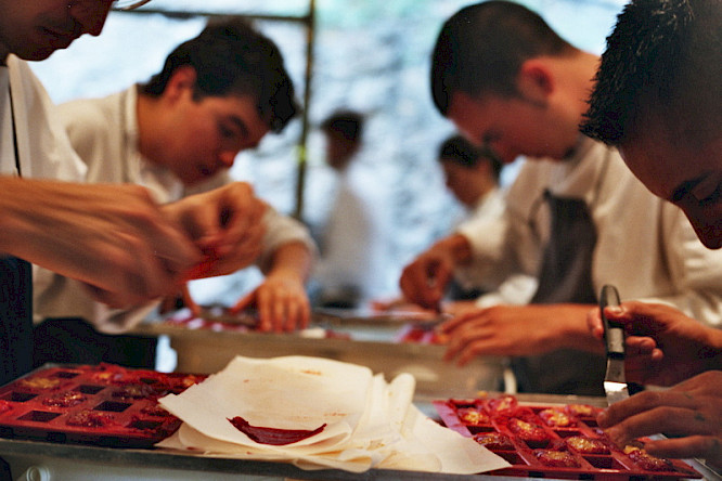 The starred chef Ferran Adrià is known as the best, most innovative and craziest cook in the world. In his always fully booked restaurant „El Bulli“, 50 persons are permitted to experience through 30 courses the split between his technical-conceptual cuisine and all conventions of culinary art as well as our general vision of cooking. Every year, the restaurant closes for six months. During this time, Adrià and his creative team retire to their cooking laboratory in Barcelona, to create a new menu for the following season. Everything is allowed – except of copying themselves. One year with Ferran Adrià, the development of a new menu, searching for the essence of creativity and obsession in a place where they already call the „frozen parmesan air with cereals“ from 2004 a classical dish.