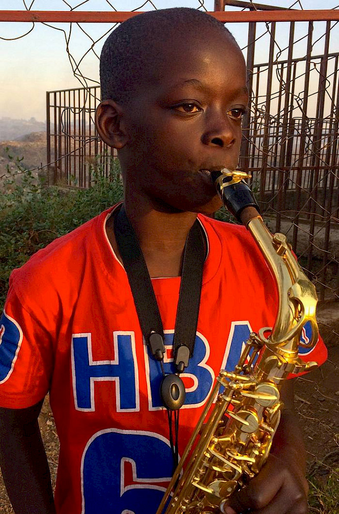 When music rises above the smoking garbage dump at sunset, the thoughts of 12 year old Fidel Otieno float into the distance. He merges with his saxophone and no longer sees the huts of the slum in front of him, but dreams of an audience that is enthusiastic about his music.