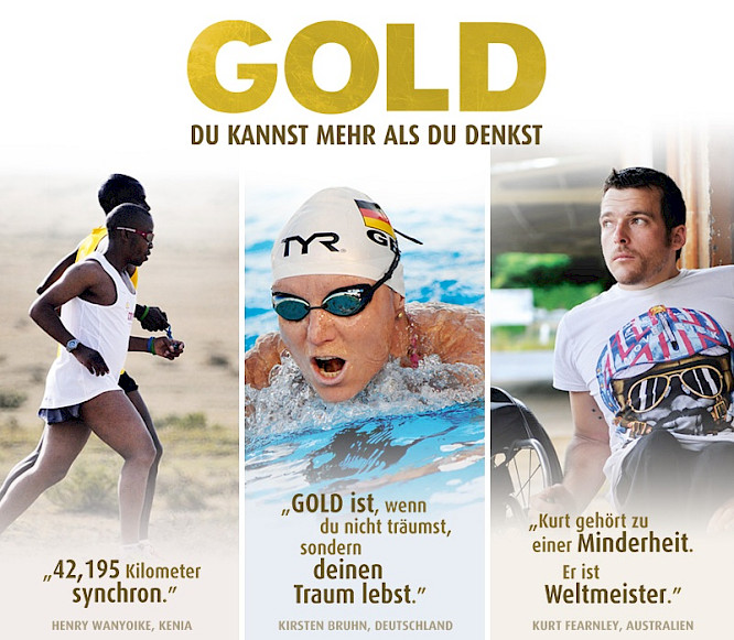 A documentary about three of the most inspiring Paralympic athletes and their journey to the Paralympics 2012 in London. Henry Wanyoike, a blind marathon runner from Kenya, has dedicated his life to help children in need. Paralyzed world champion swimmer Kirsten Bruhn is bringing her story to companies and schools to give an example of what we can make of our lives, no matter how tough the obstacles are. And just as Kirsten and Henry, the Australian wheel chair racer Kurt Fearnley has turned his life from tragedy to triumph. He is following his goals of achievement and inspiration. GOLD sends a strong signal to everyone. It is a message one cannot ignore. These athletes make their physical limitations seem unimportant and encourage us to expand our horizons: YOU can do more than you think - each and every one of us can reach GOLD.