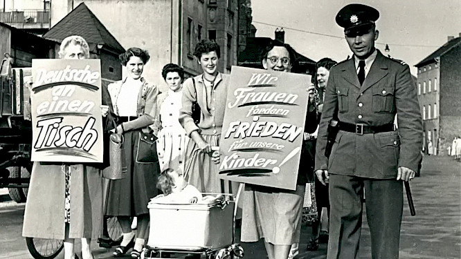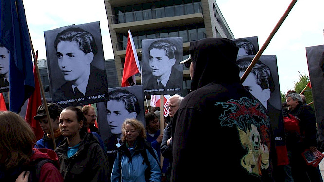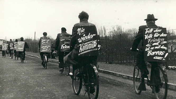 Soon after the end of World War II, when the Cold War had started, the West German Government planned the building of a new army. This project caused huge protests among the war tired population. The government reacted quickly: Within a few weeks a political criminal law, constructed after the example of the Nazi law, was invented. All citizens, who were against the rearmament or for the reunification of West and East Germany, could be persecuted now as public enemies. The Communist Party of Germany and other opposition organizations were forbidden. About 500,000 men, women and children were affected by political persecution, which often was carried out by police men, public prosecutors and judges, who had been trained during the Nazi time. About 10,000 men and women were punished with imprisonment, partly for a very long time. Finally, the whole political movement was smashed down by this persecution, which is unprecedented in western democracies.