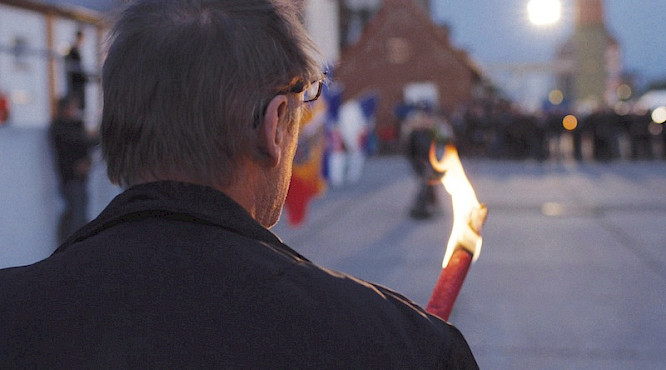 “After all, these are not good memories, fun memories. And really, that time is buried.” Between 30 April and 4 May 1945, several hundred civilians commited mass suicide in the Pomeranian town of Demmin. There was desperation between the ideological void and the fear of the Red Army. Whole families drowned, hanged or poisoned themselves. The nervousness of the old citizens of Demmin whom Martin Farkas visits is still noticeable: not a hand that stays motionless during the interview – they are rubbed against skirts or twitch all over the place. One inhabitant describes the perfection of the city before the war and the “tinkering” that began after it was over and is still going on today. “Tinkering” is not a bad term for what is going on in Demmin and what Farkas is looking to illustrate in his film. There are the right wing extremists who abuse the consequences of that mass hysteria as an occasion for an annual funeral march on 8 May, the anniversary of the German surrender. There are the citizens of Demmin who turn away, part disgusted, part indifferent. There are counter-rallies and a few mostly contemporary witnesses, who open up about their memories for the first time after 70 years. (Carolin Weidner, DOK Leipzig)