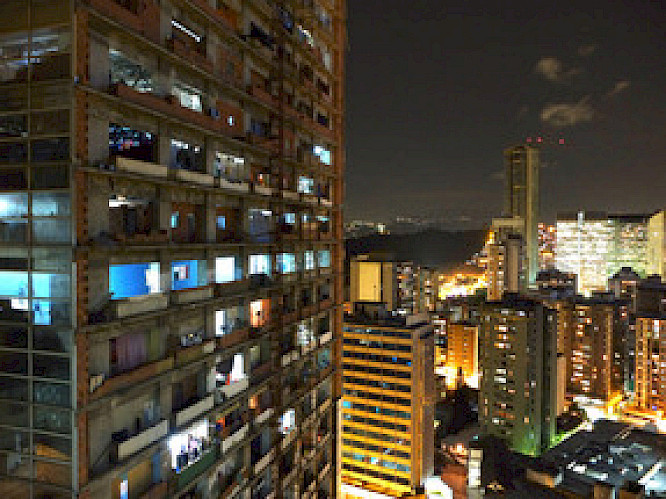 What happens when a bank fails? For example it is gonna be squatted by 3000 people and transformed into a housing project. Downtown Caracas a 200 meter skyscraper-ruin is rising up to the caribbean sky and is used as a shelter for 750 families. Ignored by the city's administration and dreaded by the neighborhood the inhabitants of Torre Confinanzas build up their own model of a socialist micro-society in their vertical city. Ruina tells about difficulties and achievements by building up a social community out of a mass of people.