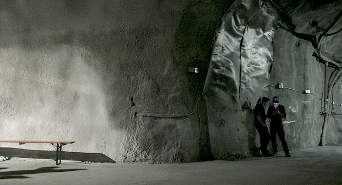 THE FEAR OF DYING IN TRANSIT is a hypnotic journey through the landscape of an underground construction site. Shot around the opening of the Gotthard Base Tunnel in Switzerland, architectural observations blend with safety rituals. Facts dissolve within the realm of phobias and science fiction.