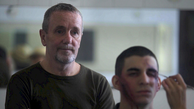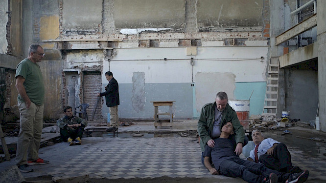 Thirty-five years after the end of the war, Argentinian artist and director Lola Arias invites veterans to look back – together, either in pairs or in dialogue with the camera. The British and the Argentinians face each other as former enemies, but also form an ensemble, such as when they re-enact a battle scene in an abandoned building that resembles a theatre. Maps, faded magazines, and footage of the surreal sites where combat took place provide visual points of departure and cinematic spaces for their stories of fear – fear of both dying and of killing – and of the repercussions of a war that left its mark on all of them. But Teatro de guerra doesn’t just confine itself to the past: in staged encounters with young actors the same age that Marcelo, Jim and the others were back then, the film also asks how memories are transmitted, and how they live on.