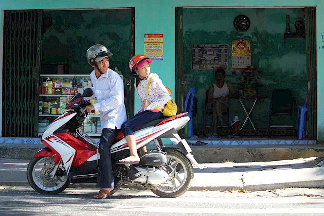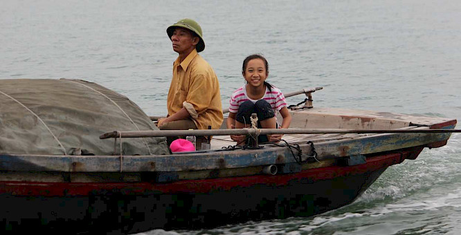 Vi lives in a floating house but she cannot swim. All the houses in her village in northern Vietnam are built on water. So if Vi wants to visit her friends or go to school, she has to travel with a boat.