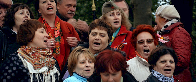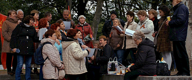 Every year, on the 9th of May, people gather in Treptower Park in Berlin. They come dressed in their best outfits or in Soviet military uniform. They carry flags, banners and posters. They lay flowers at the monument to the Soviet soldier; they sing, dance and drink. They celebrate the victory of the Soviet Union over Nazi Germany.