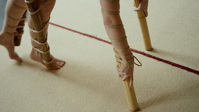 "For her documentary Violently Happy, Paola Calvo accompanied the former dancer Felix Ruckert, whose choreographies coused irritation in the art business and who founded the Berlin project »Schwelle 7«. For experiments in BDSM, meditation and creative bodywork, this centre is a protected space for the participants and their notions of sexuality and pain. A courageous, insightful film that shows how liberating the testing of power structures and the acting out of sexual fantasies can be in the game of dominance and submission." (IFFF Dortmund|Köln)