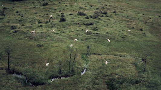 In a single shot the film shows different time-periods and creates a fairytaile atmosphere. A stillife is presented in an outside garden in front of a modern architecture, that has a fake- wooden-outside.fasade-.The paradox longing for feeling adventurous and homely is part of the children-song. (Barbara Filser)