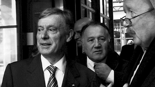 What’s in this movie? It is but a small sequence – a 37minute excerpt of an encounter. A universal event: The statesman, the representative, the dignitary meets a group of representatives. There is talk of the arts and repeatedly of economy. It is also the attempt at communication under pressure. All those involved appear somewhat tense. Details are getting lost, simplifications occur. But underneath the rubble heap of text the movements of our time, our epoch become visible. Maybe something that in later days will be allocated as typical or characteristic for this time.